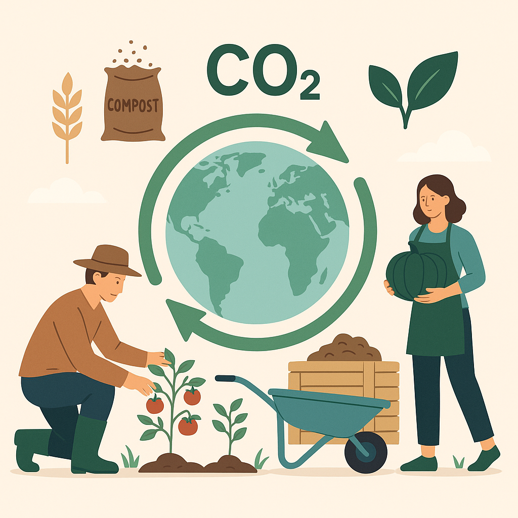 落ち葉や米ぬかを畑に戻す  廃棄物を資源に変えることは、焼却によるCO₂排出を減らすことにつながります。 雑草マルチ  抜いた草を処分せず畑に敷けば、保湿と有機物の供給になり、余分なエネルギーを使わずに済みます。 百均アイテムの活用  手軽で再利用できる資材は、過剰な消費や廃棄を抑える工夫です。 自分で育てた野菜を食べる  輸送や包装が不要になり、フードマイレージの削減に直結します。
