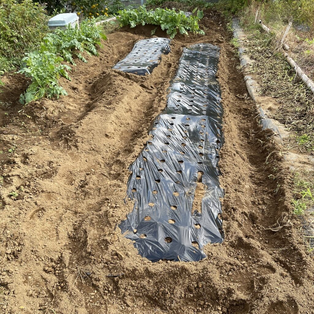 (どれをどこに植えたか忘れてしまうので、マルチに書いてあります)