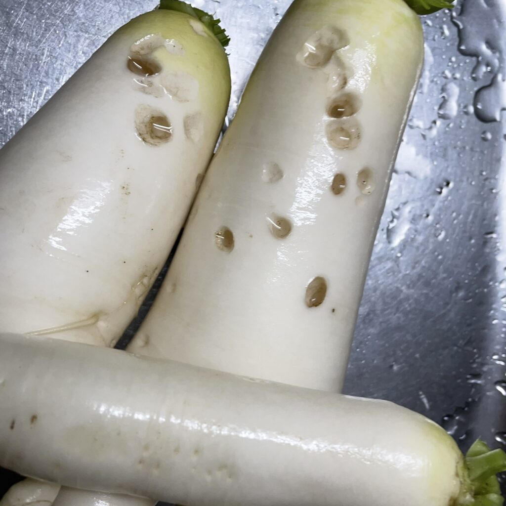 ・背景:ダイコンを引き抜いてみたら穴がボコボコ開いていた件