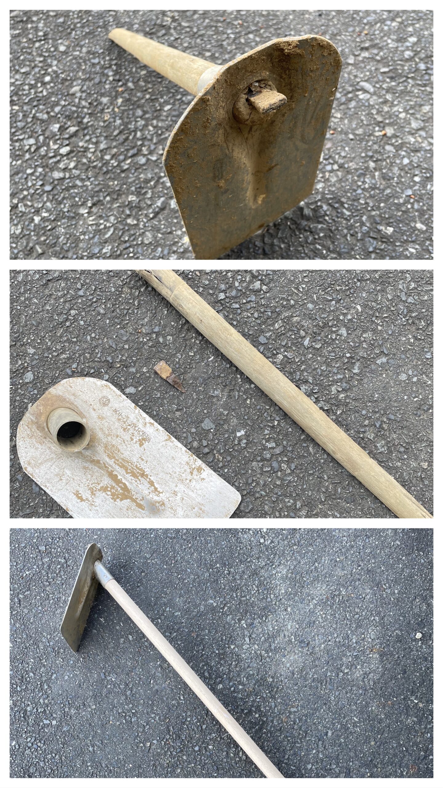作業の途中で、鍬の柄が抜けた。