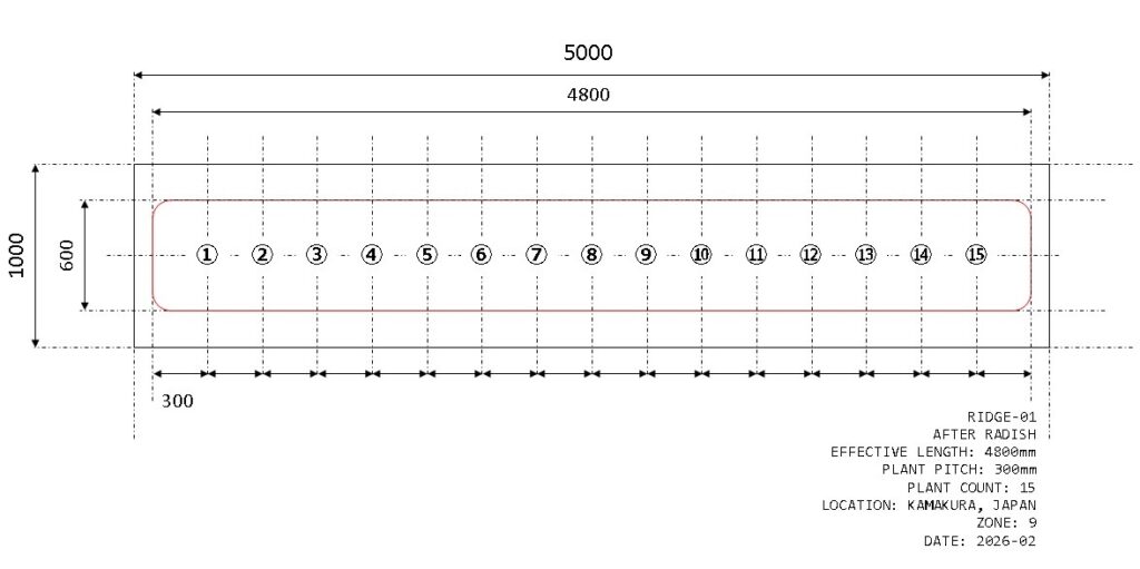 内容 :畝設計・配置確定・植え付け
