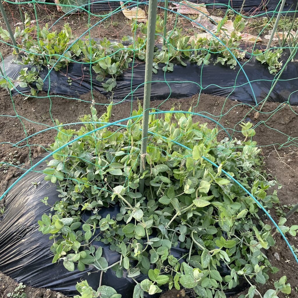 冬を越えたキヌサヤは、いま横に広がっている。