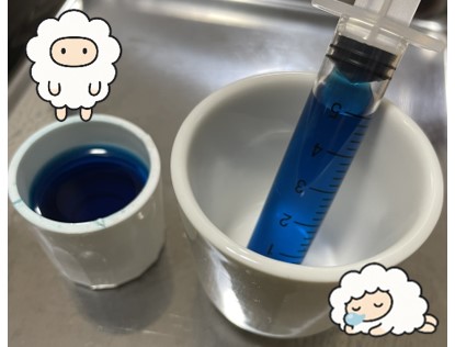 シリンジを取り出し、水の代わりに青く着色した液体で計測を始めた。