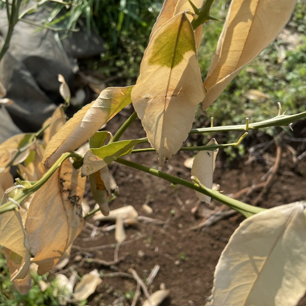 背景:冬越し後、先住の柑橘が弱り、葉が一斉に枯れ込んだ
