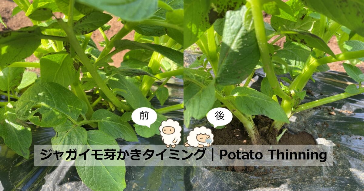 関連:ジャガイモ芽かき前|Before Thinning Potatoes