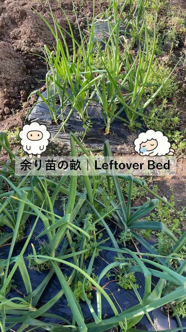 写真:余った畝に植えられたタマネギがばらつきながら育っている様子