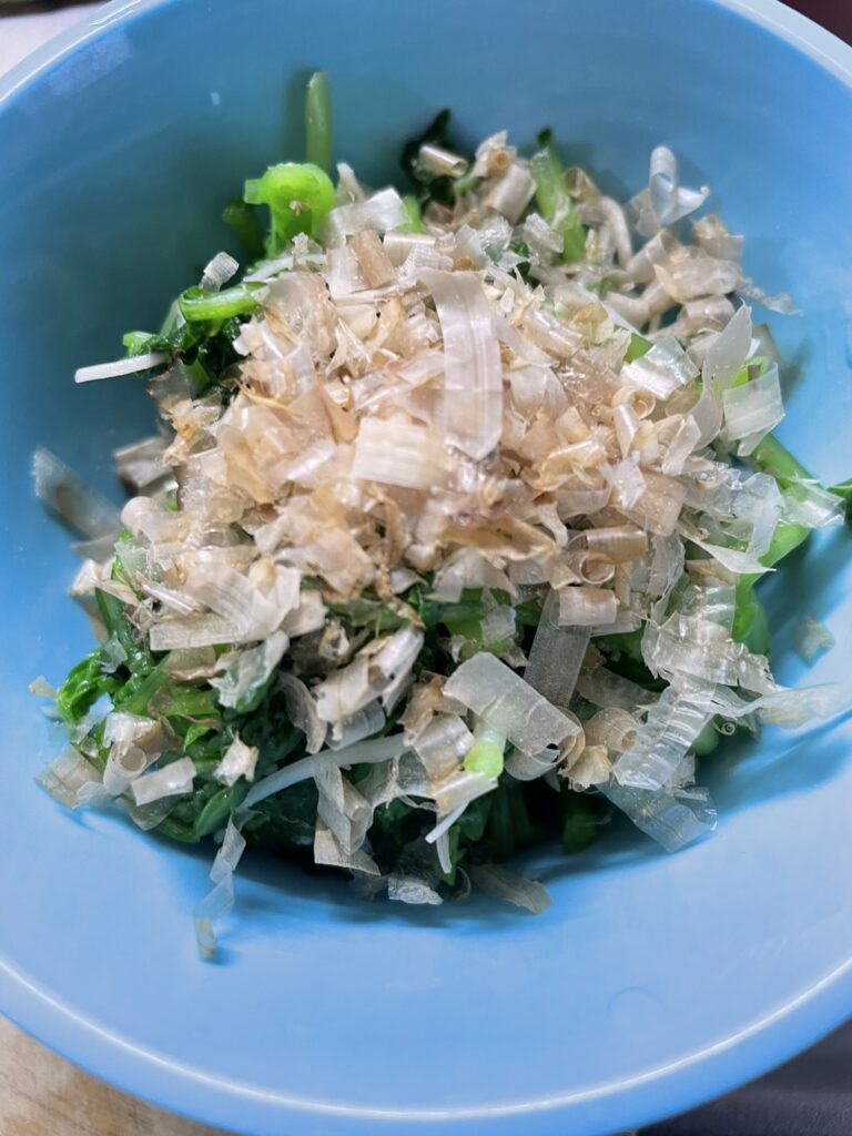 口に運ぶと、青菜よりも柔らかく、ほのかな辛味と爽やかさが広がります。新鮮な香り「これは夏からここまでのごほうびだな」と思わずうなずいてしまいました。ほんのひと握りの小さな菜でも、食卓にのると季節の移ろいを感じさせてくれます。